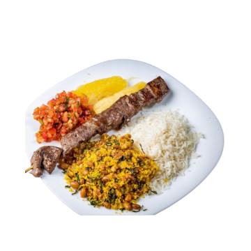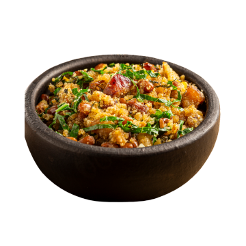 Tamanho: Arroz, feijão tropeiro, vinagrete, mandioca e um espeto